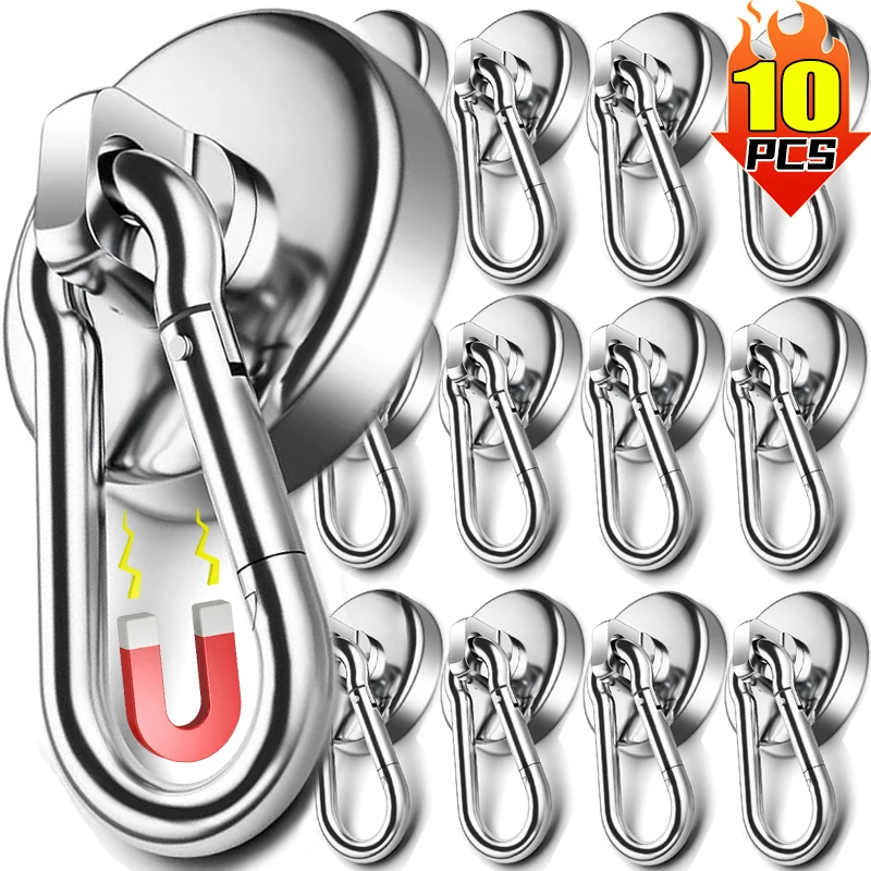 Strong Magnetic Hooks Heavy Duty Neodymium Magnet Hook 360°Rotating Carabiner Hook Refrigerator Magnetic Suction Storage Rack
