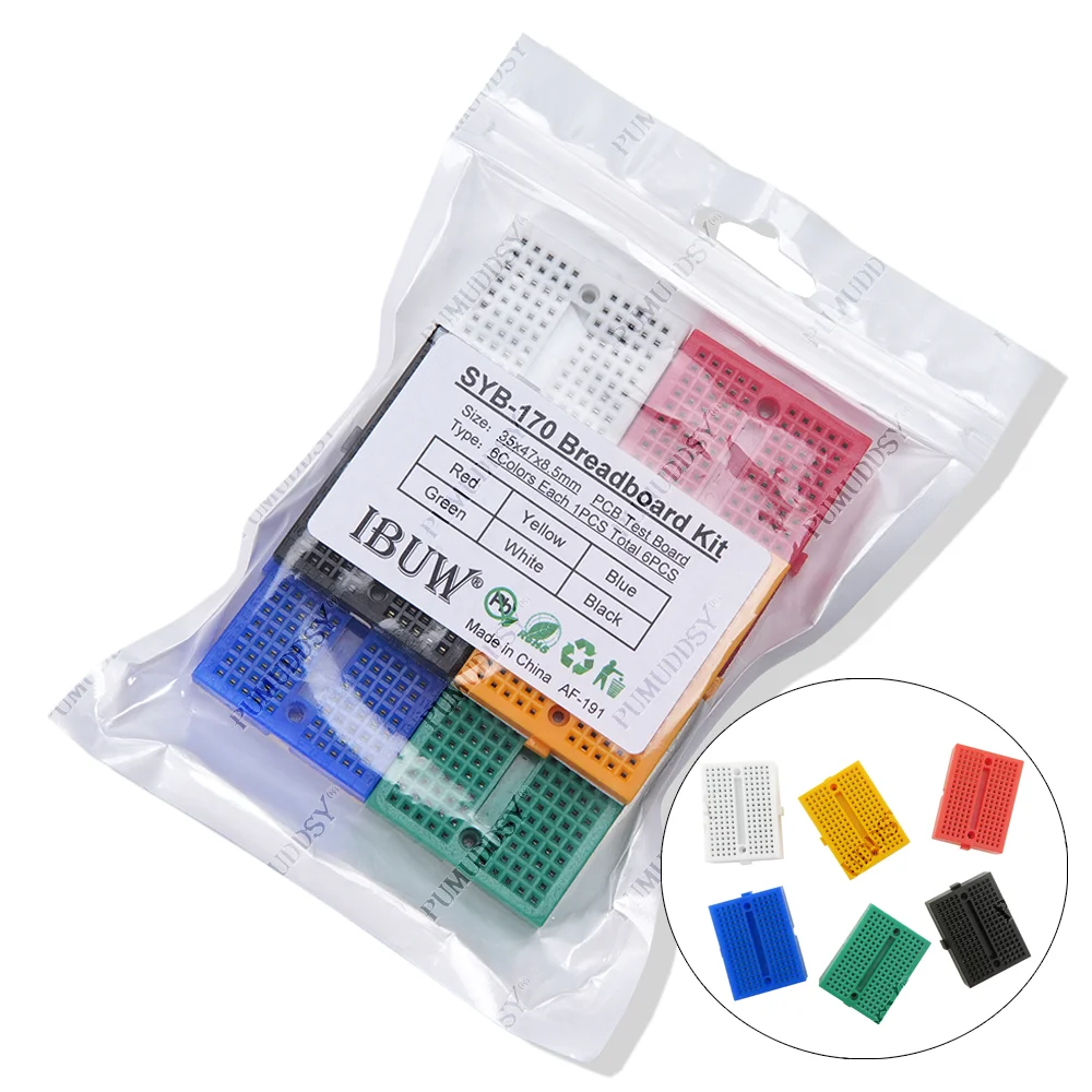 SYB-170 Universal Solderless Prototype Breadboard 170 Tie-points Mini Breadboard DIY Kit White Black Red Yellow Blue Green Each1