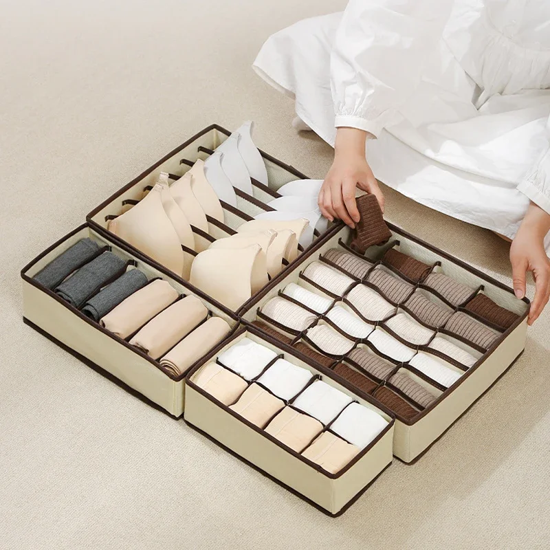 Underwear Storage Box Foldable Four-Piece Set Home Divided Cabinet Drawer For Bra Socks Underpants Scarf Tie Clothes Organizer
