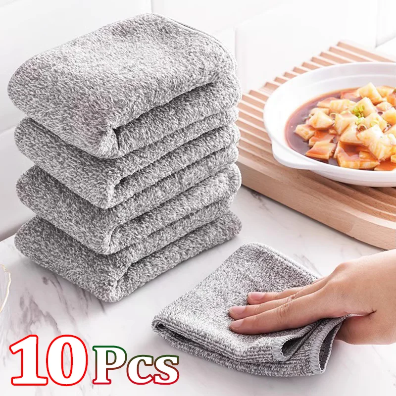 1-10Pcs Bamboo Charcoal Fiber Cleaning Cloths Thickened Water Absorbent Towel Kitchen Non-Stick Oil Rags Home Cleaning Dishcloth