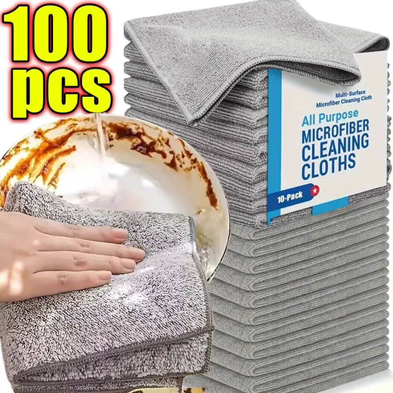 1/100PCS Gray Bamboo Charcoal Thickened Super Absorbent Dishcloth Anti-grease Kitchen Wiping Rags Microfiber Cleaning Cloths
