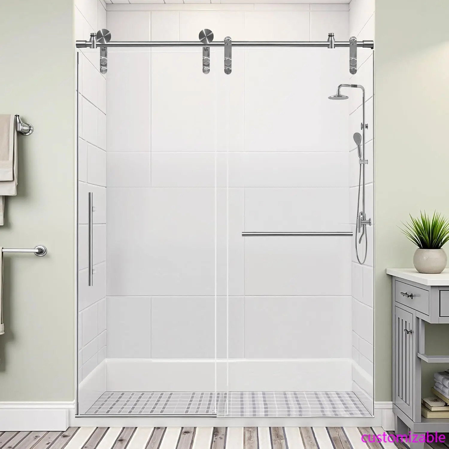 Frameless Shower Door with 8mm Tempered Glass, Stainless Steel Hardware, Modern Style