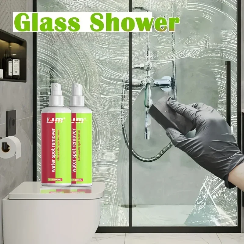 Hard water spot removal kit, bathroom glass polish, powerful hard water remover, descaler for shower doors, tiles, stainless steel.