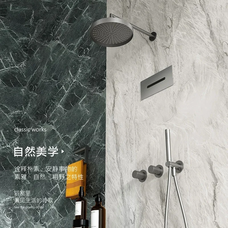 Premium Brushed Nickel Solid Brass Rainfall Shower System Recessed Bathroom Shower Set Triple-Function Hot Cold Shower Faucet
