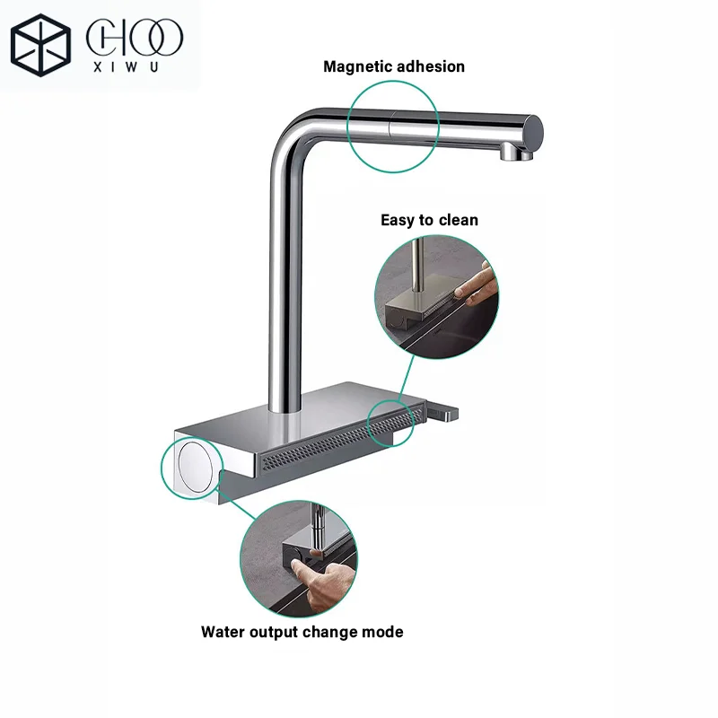 New Black Brass Waterfall Faucet Hot And Cold Water Kitchen Faucet Single Handle Switch Pull Out 360 Degree Kitchen Mixer Tap