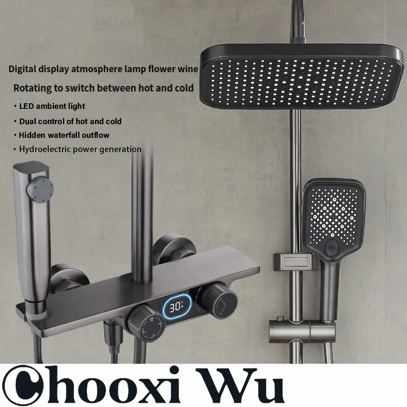 Shower Set Accessories Brass Shower System Bathroom Thermostatic Faucet Hot Cold Mixed Bathtub Shower Faucet LED Digital Faucet
