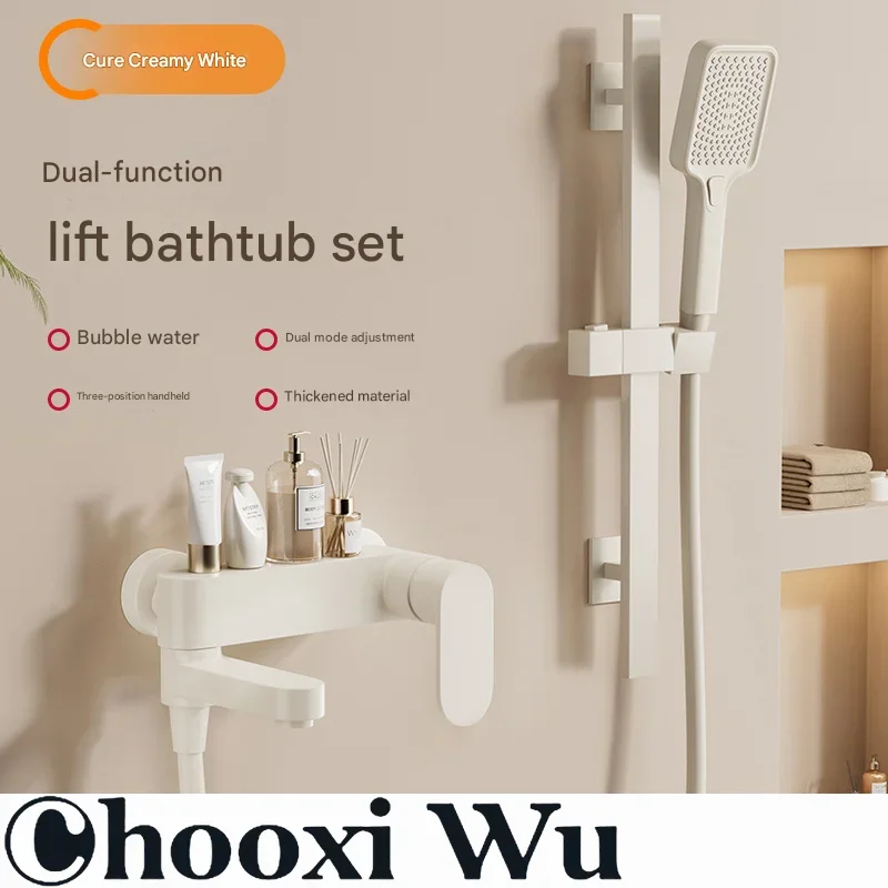 Brass Shower Bathroom Bathtub Faucet with Swivel Tub Spout Wall Mounted Hot and Cold Water Mixer Valve Household Bath Tap