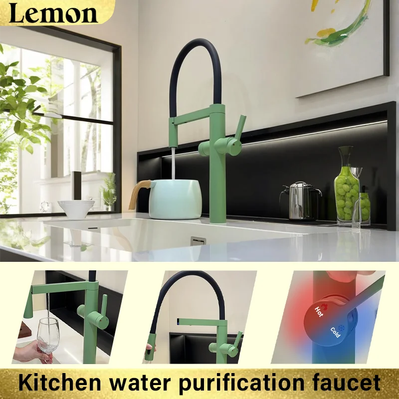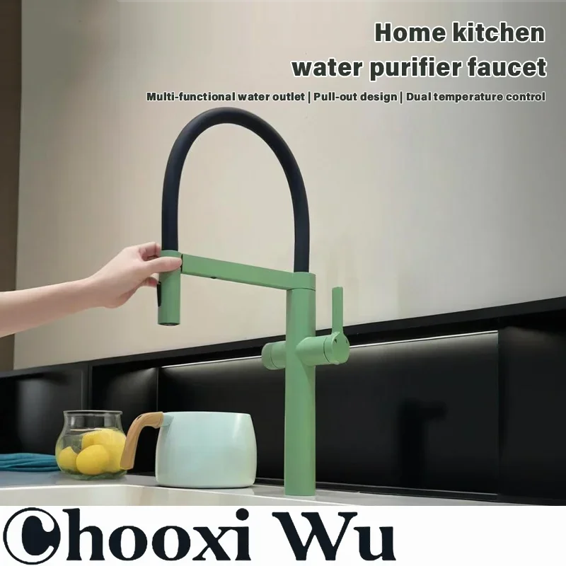 High end black brass kitchen faucet magnetic suction design 2 function single handle cold and hot dual control sink faucet