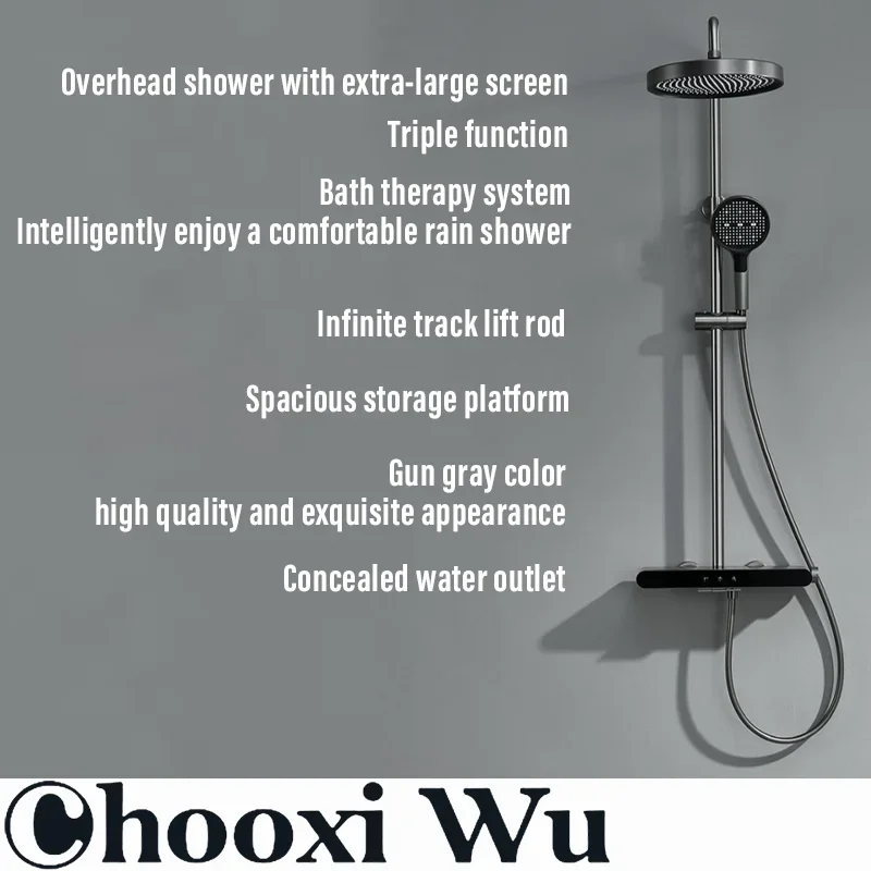 Grey Shower System Set Bathroom Digital LED Rain Showers Faucet Brass Bath Thermostat Rainfall Shower 3 Way with Bidet Taps Sets  Read more