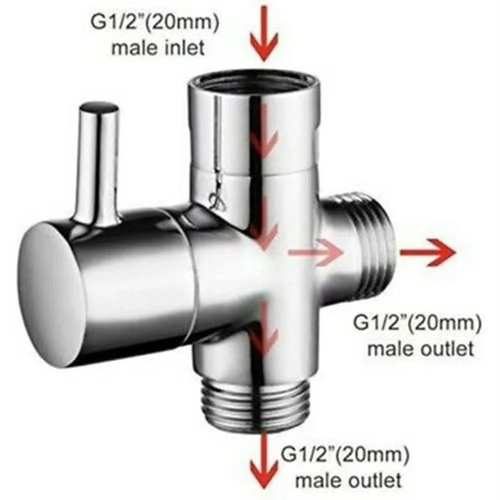 G1/2in 3 Way Diverter Valve T-Adapter Converter For Shower Brass Water Tap Connector Bathroom Faucet Water Separator
