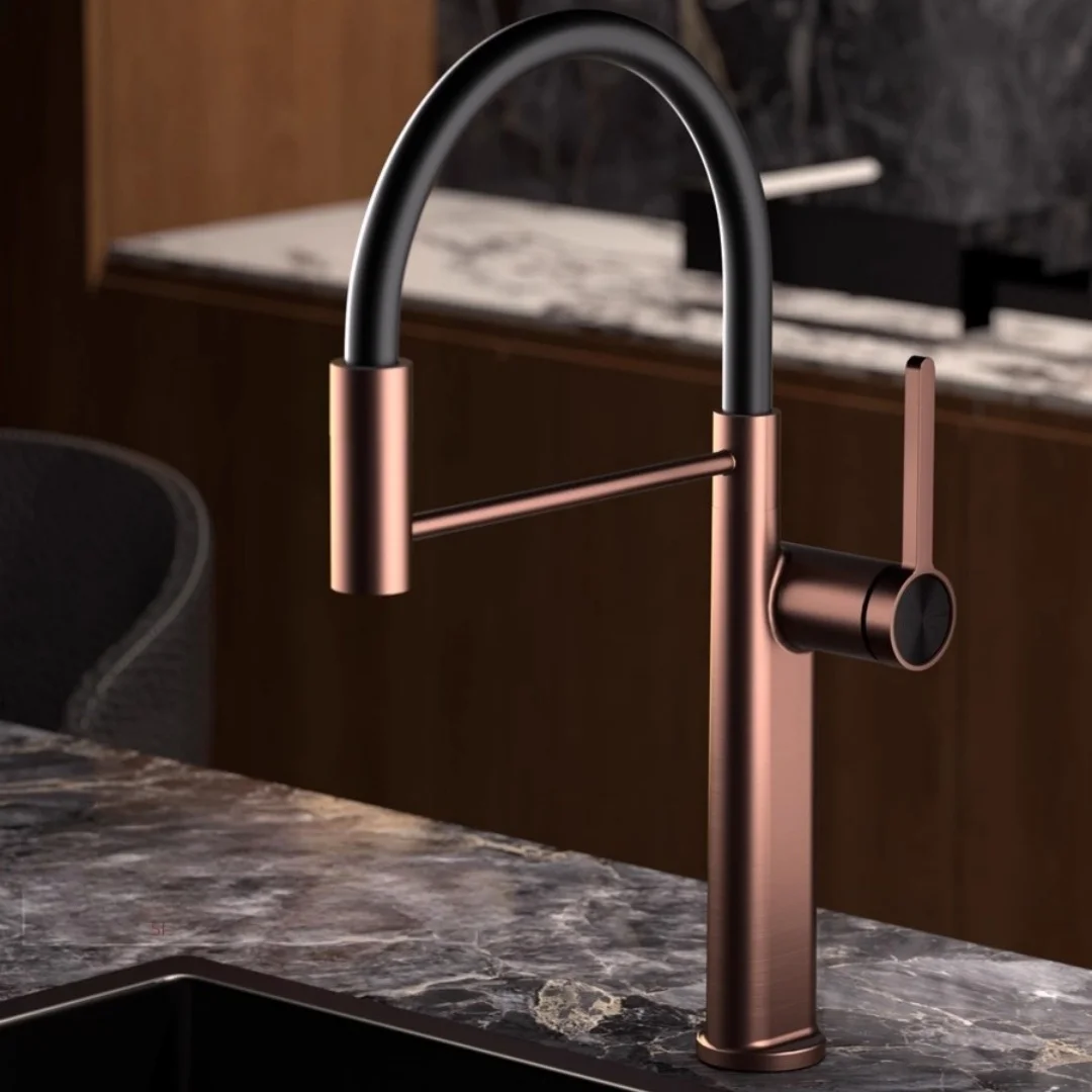 Brushed Rose Gold Pull Out Kitchen Faucets Brass Black Sink Faucet Brass Sink Tap Rotating Spout Mixers Tap Hot Cold Water Crane