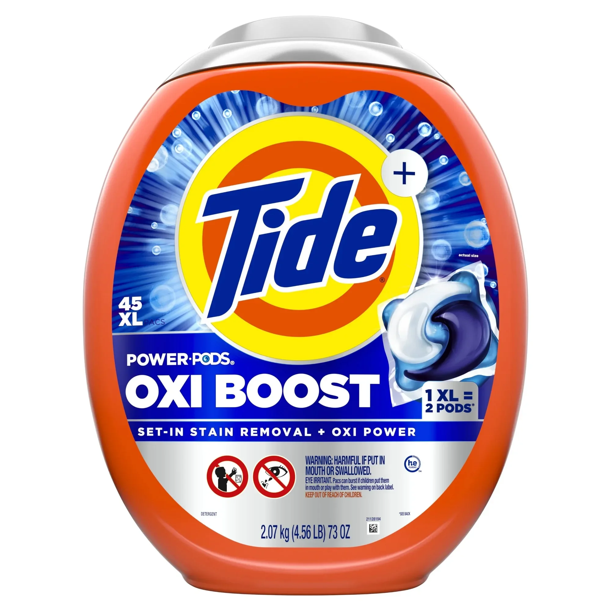 Laundry Pods (45 count), a 3-in-1 formula with stain remover and brightener for high-efficiency and standard washers