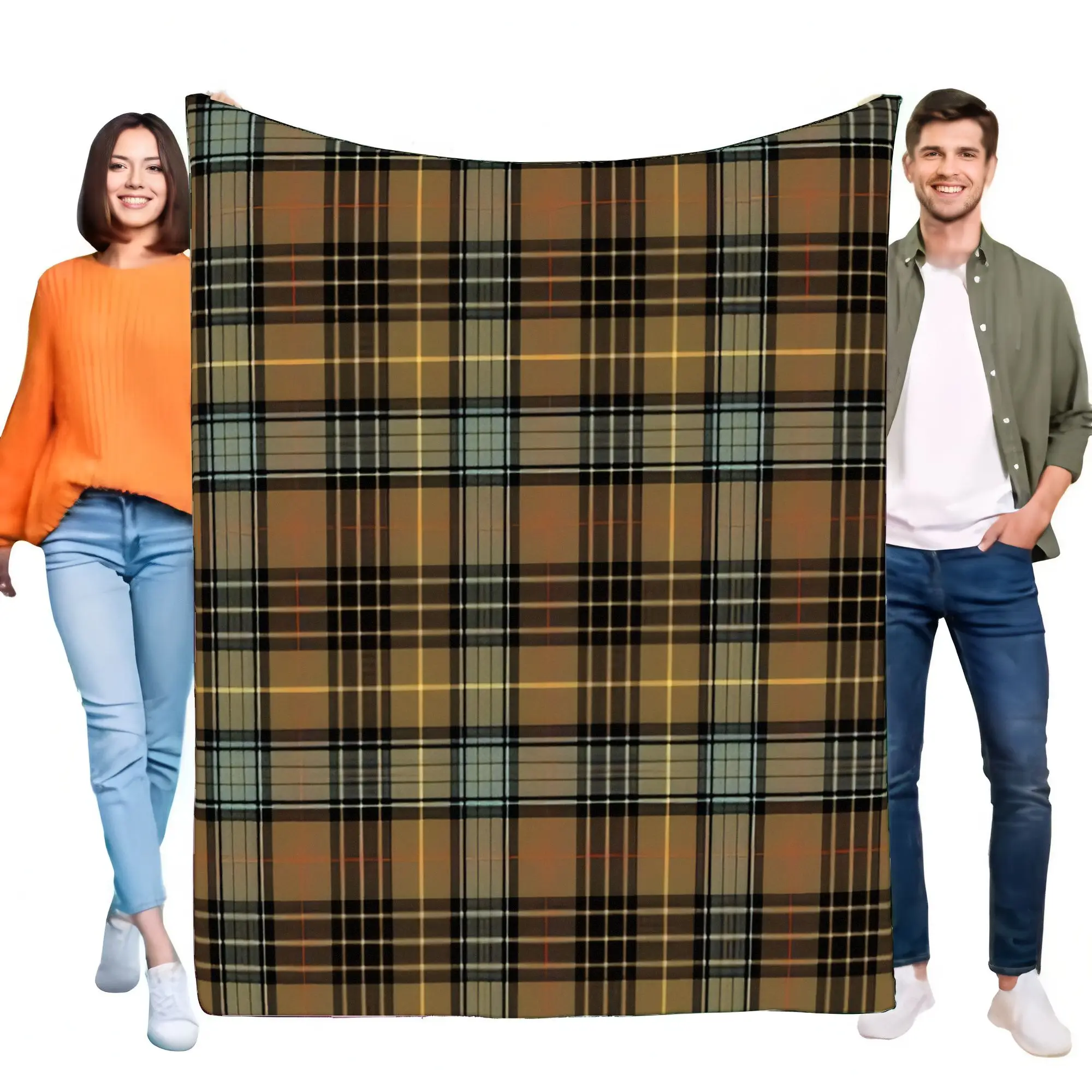 Ultra-Soft Brown Tartan Plaid Flannel Fleece Blanket Cozy Warm Lightweight Throw Bed Sofa Living Room Home Decor Gift