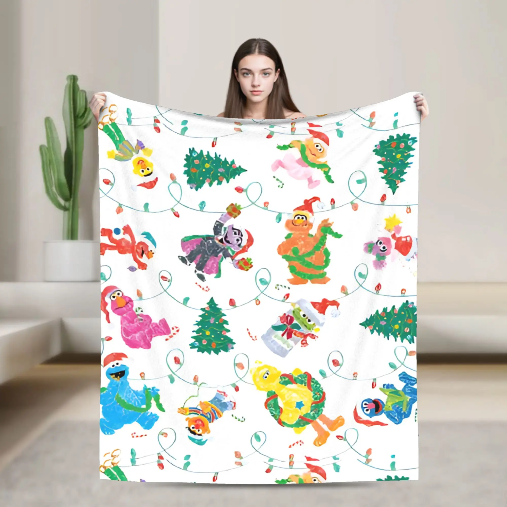 Christmas Trees Pattern Blanket Quality Super Warm S-Sesames Streets Bedding Throws Autumn Decorative Couch Bed Print Bedspread