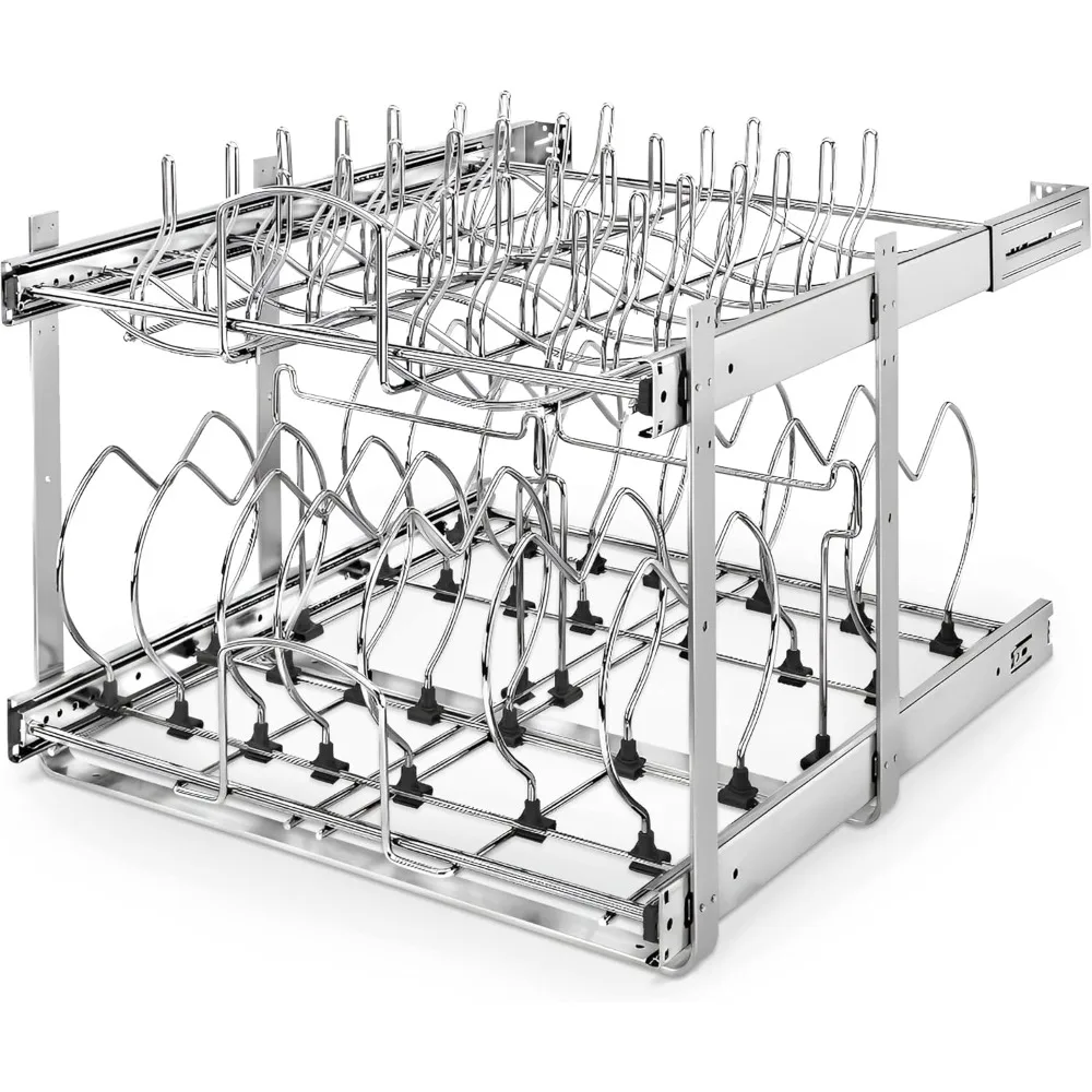Rev-A-Shelf 2-Tier Kitchen Cabinet Pullout 20.75" Cabinet Organizer for Pots, Pans, and Lid Cookware, Adjustable Heavy Duty Wire