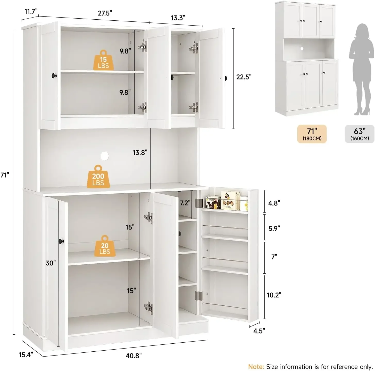 [Limited Stock!]71" Tall Kitchen Pantry Storage Cabinet with Microwave Stand & Door Shelf, Freestanding Kitchen Hutch with 6 Doo