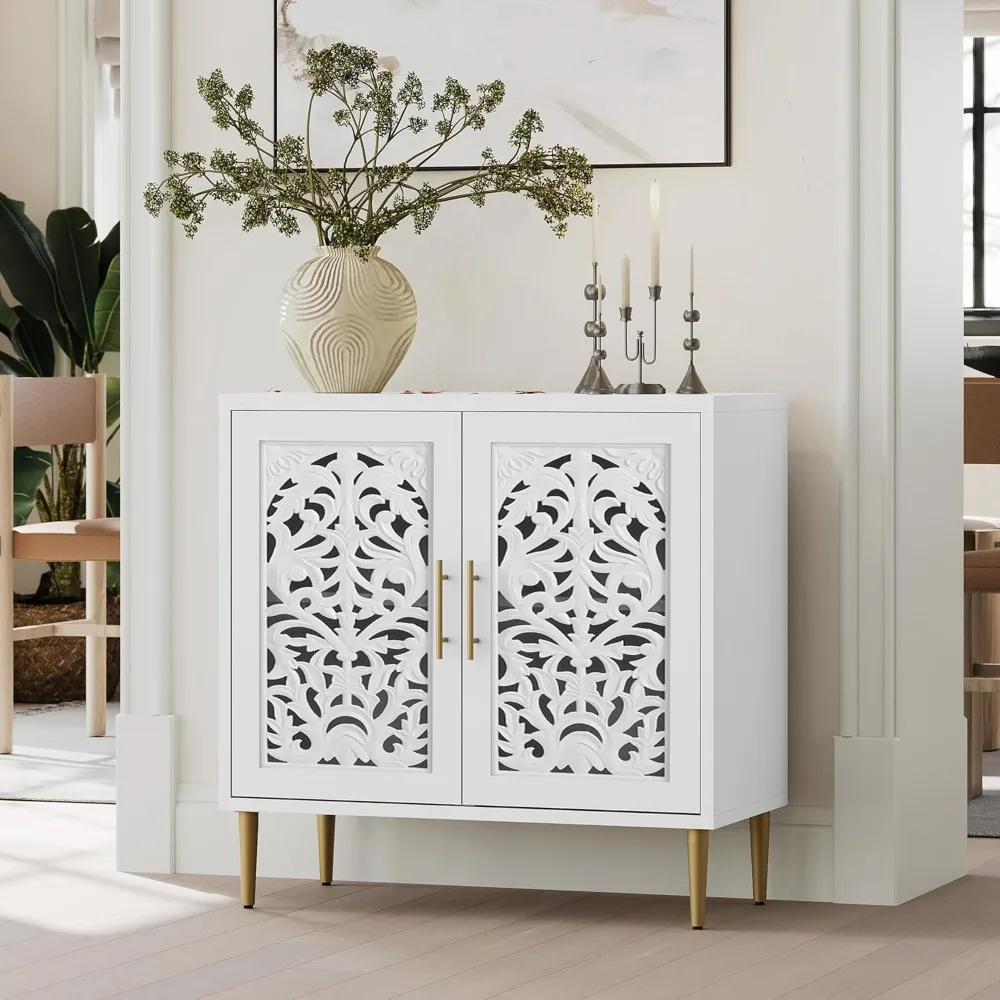 Vintage Carved Accent Cabinet, Two-Door Buffet with Storage, Credenza for Living Room