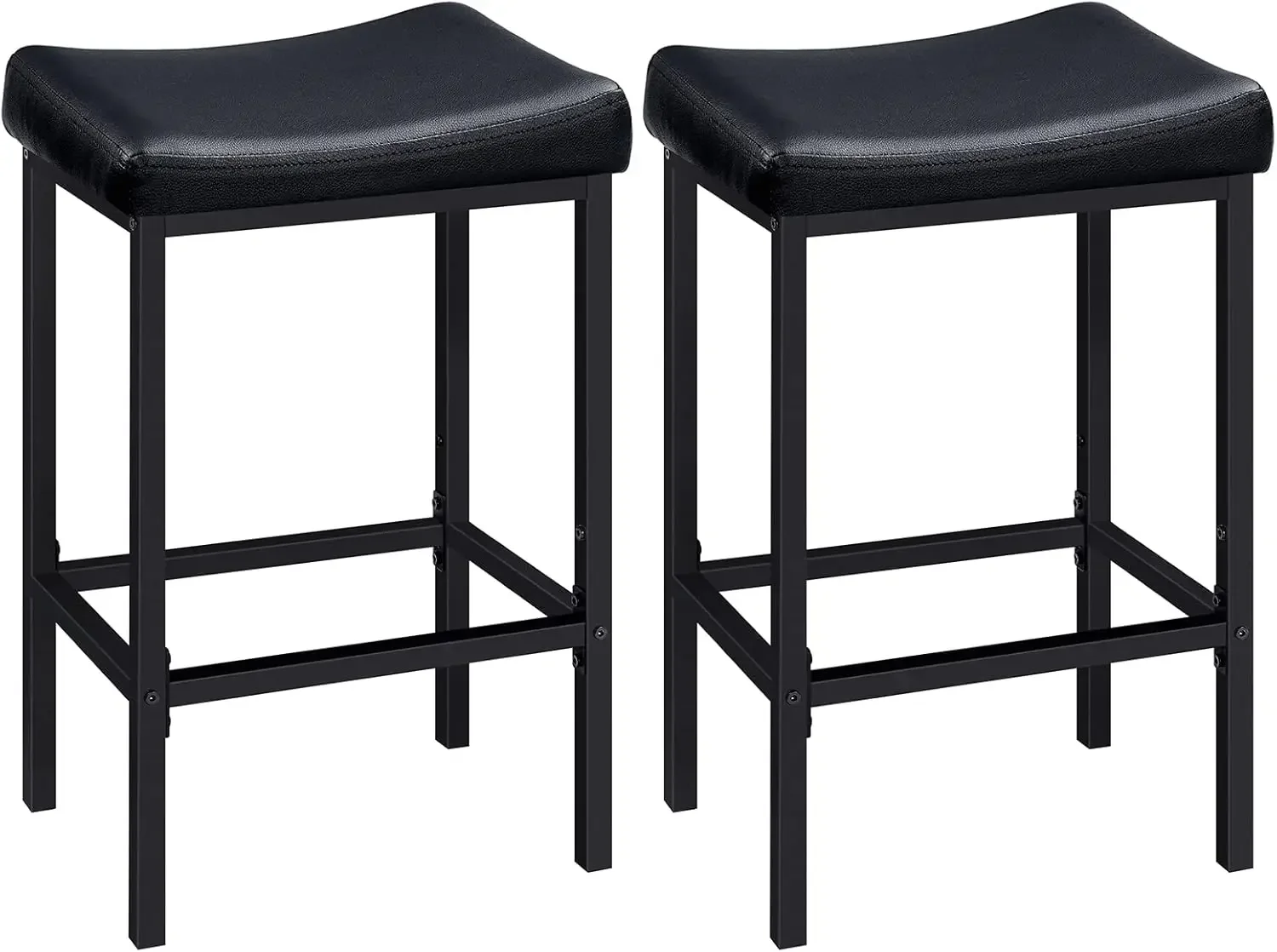 Bar Stools, Set of 2 Bar Chairs, Counter Height Stools, Saddle Barstools with Curved Surface, 24.8 Inches, 2.4" Thick Upholstery