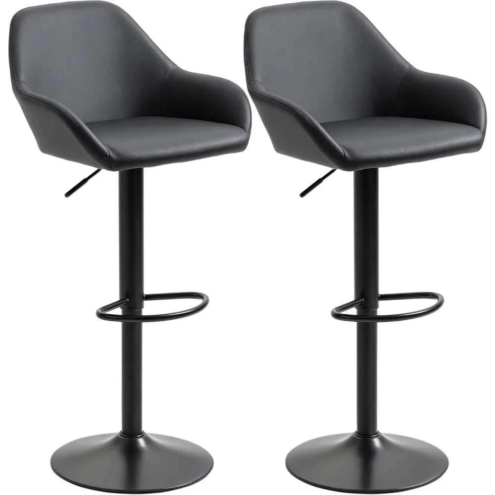 Adjustable Bar Stools, Swivel Counter Height Barstools with Footrest and Back - PU Leather Seat w/Steel Base for Kitchen & Dinin
