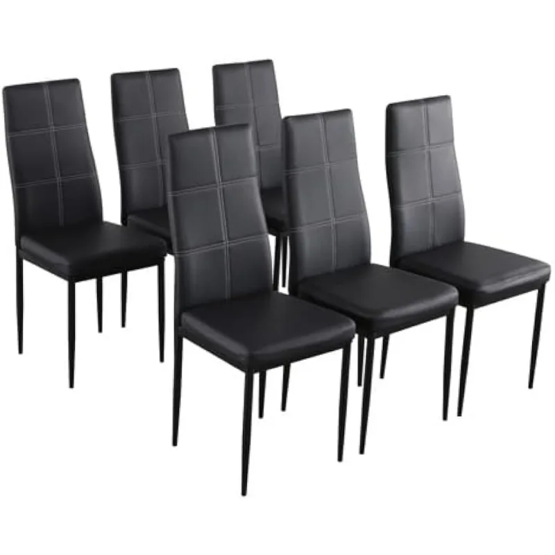 Ergonomic High Back Leather Dining Chairs, Soft Padded Seat and Back, Set of 6, Black