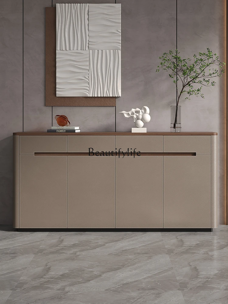Italian Style Saddle Leather Home Entrance Shoe Cabinet Large Capacity Storage Hallway Cabinet