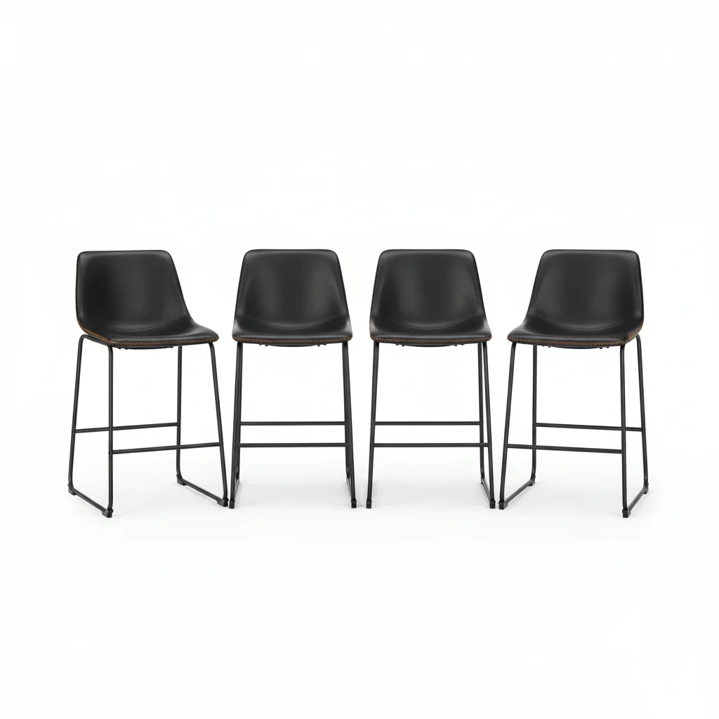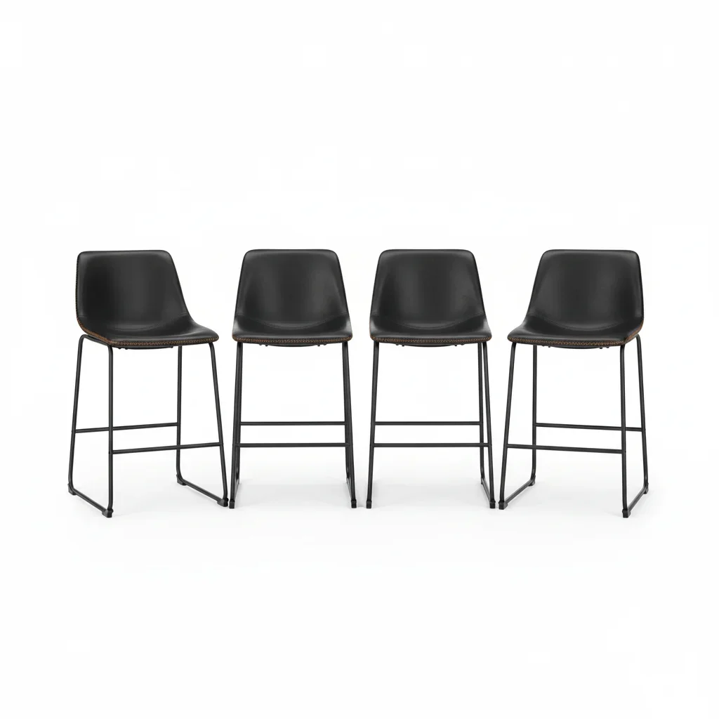 Modern Faux Leather Bar Stools Set of 4 with Metal Legs and Back 26 Inch Counter Height for Kitchen Island Black