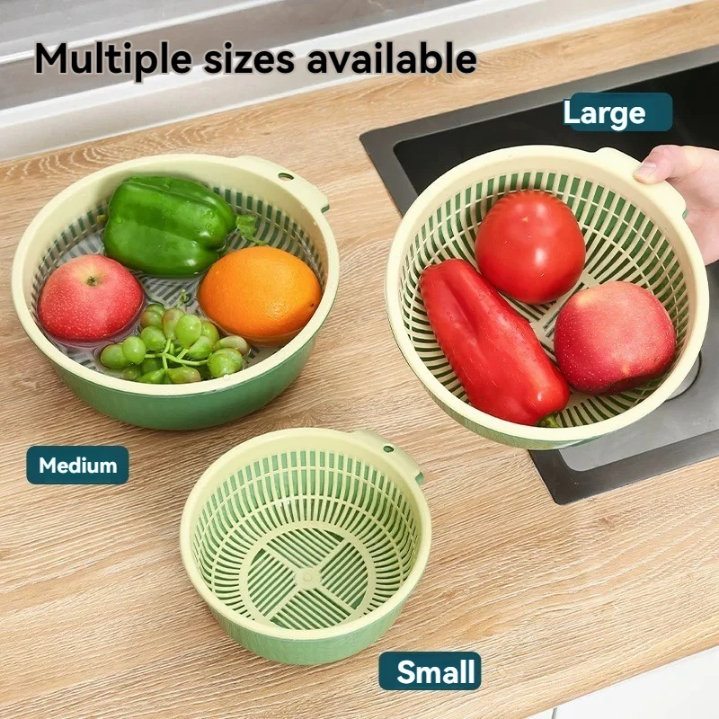 Dual Layer Perforated Fruit Washing Basket Kitchen Drainer Household Plastic Vegetable Strainer