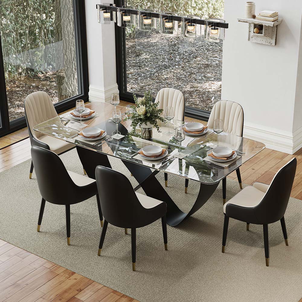 71"Modern Tempered Glass Dining Table for 6, Transparent Glass Dining Room Table for Kitchen, Black Butterfly Shape Carbon Steel Base