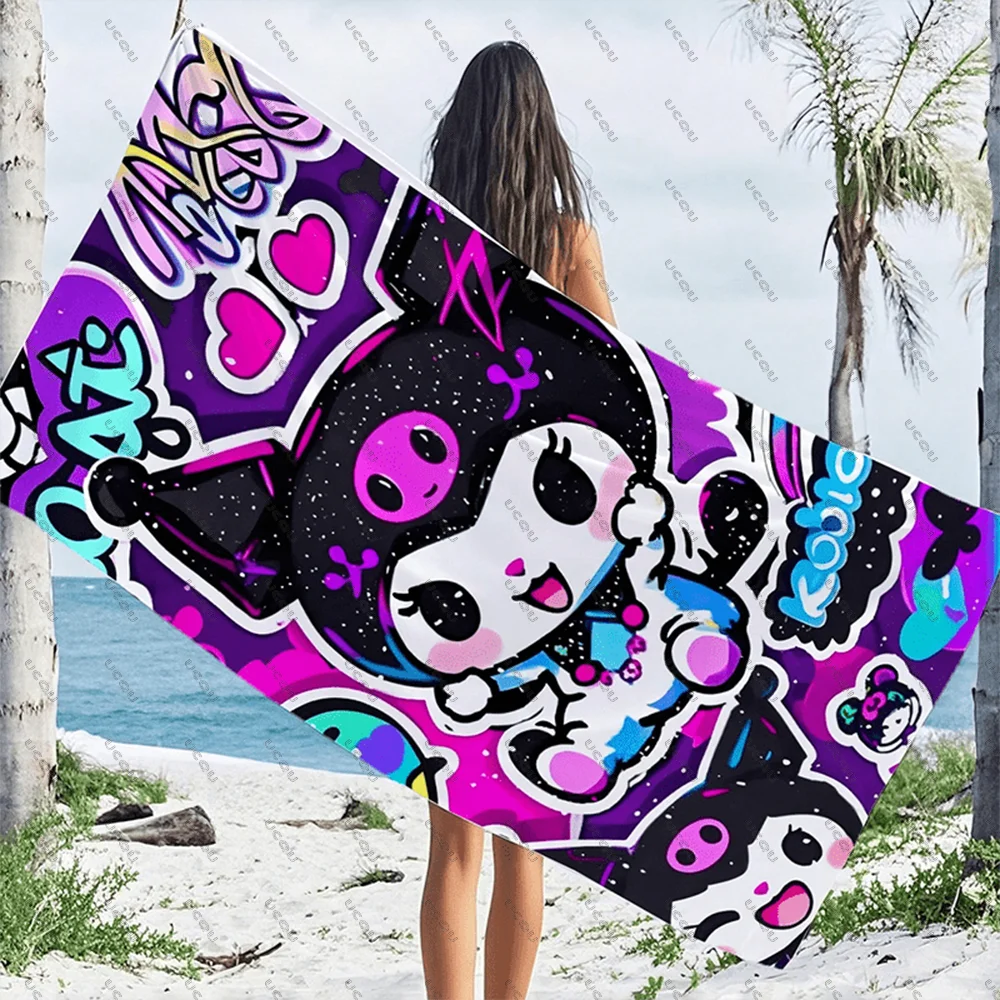 Kuromi Hello Kitty Family Beach Towel Birthday Swimming Bath Outdoor Lover Quick-Dry Gift Pool Summer Travel Vacation Soft New