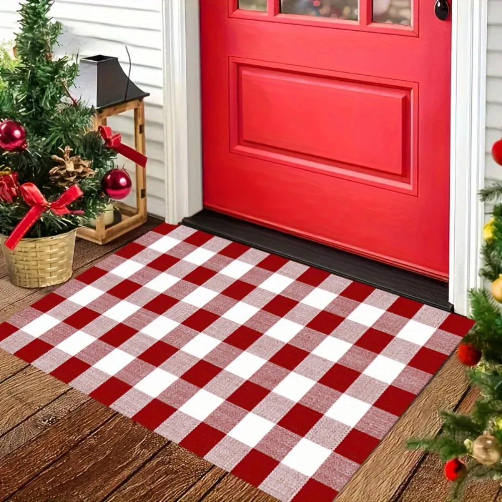 VIKAMA Holiday Christmas Welcome Doormat Red & White Plaid Non-Slip Bedroom & Living Room Decor Festive Season