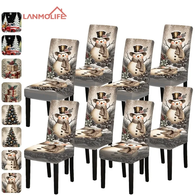 4/6PCS Christmas Dining Chair Covers Cartoon Christmas Snowman Design High Elasticity Machine Washable Home Party Decor