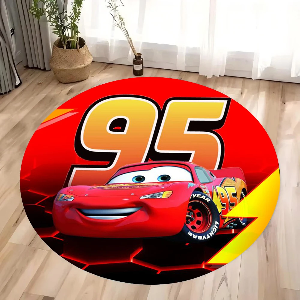MINISO Cars Lightning McQueen Themed Circle Rug for Living Room Bedroom Floor Mat Childrens Room Nursery Play Area Carpet Gift