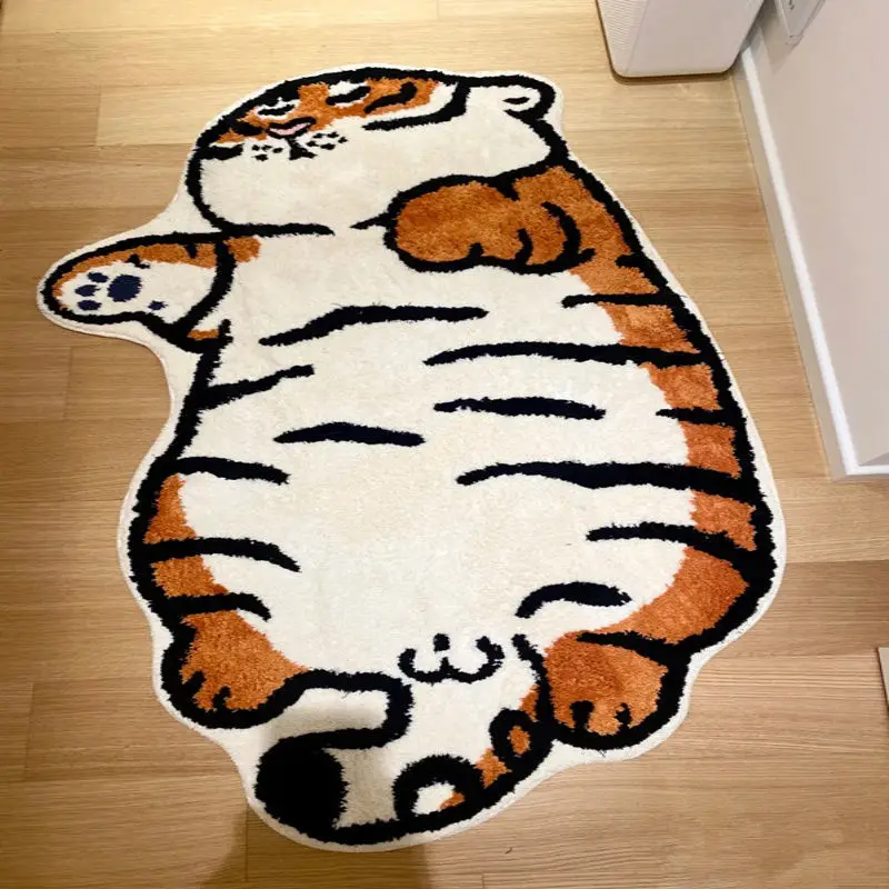 VIKAMA Cute Fat Tiger Carpet Soft Plush Skin-Friendly Touch Non-Slip Wear Living Room Bedroom Children's Room Decoration