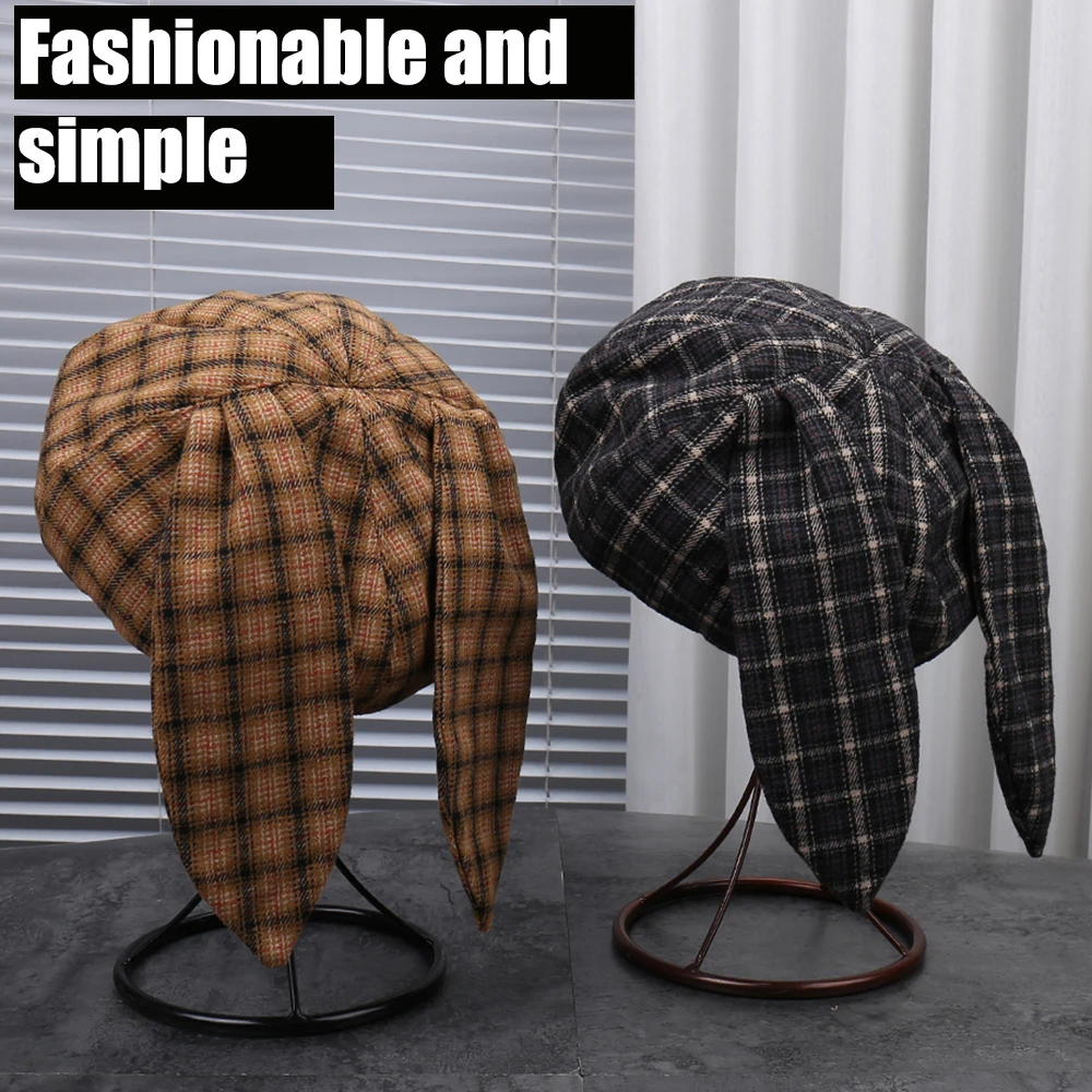 Cute new three-dimensional rabbit ear decoration grid temperament cos decoration simple and versatile beret  Read more