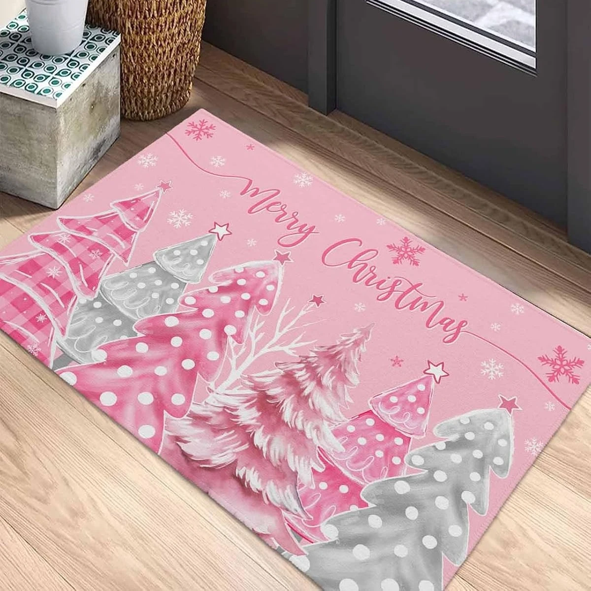 Pink Christmas Tree Snowflake Non-slip Door Mat Entrance Welcome Rug Bedroom Balcony Hallway Bath Floormat Christmas Decorations