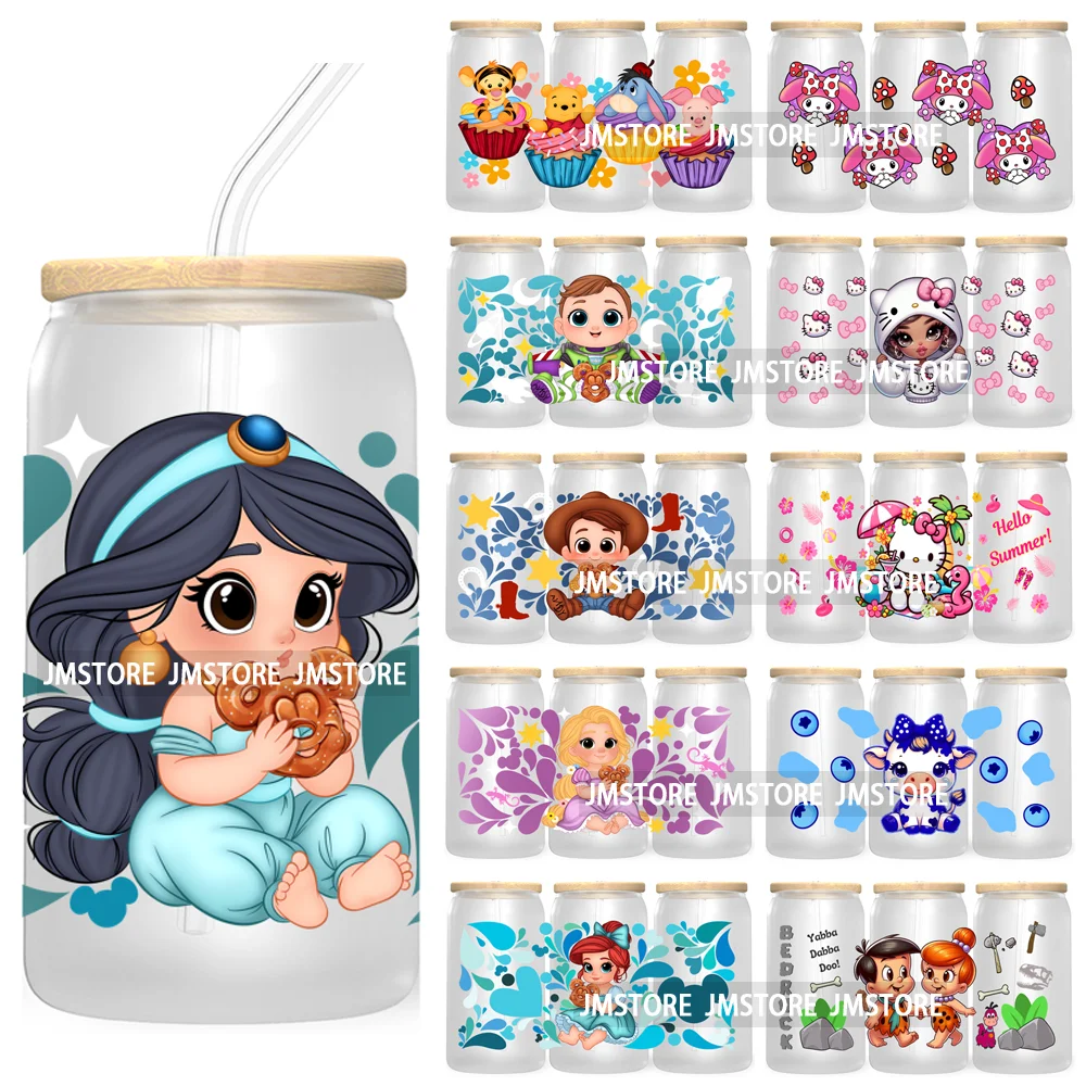 Cartoon Baby Princess Best Friends 16OZ UV DTF Cup Wrap Transfers Stickers For Libbey Glass Can Cups Tumbler Waterproof Labels