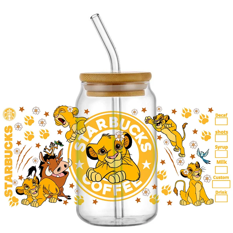Miniso Animated Characters The Lion King 16OZ UV DTF Cup Wraps Transfer Sticker For Glass Libbey Can Bottle Washable DIY Custom