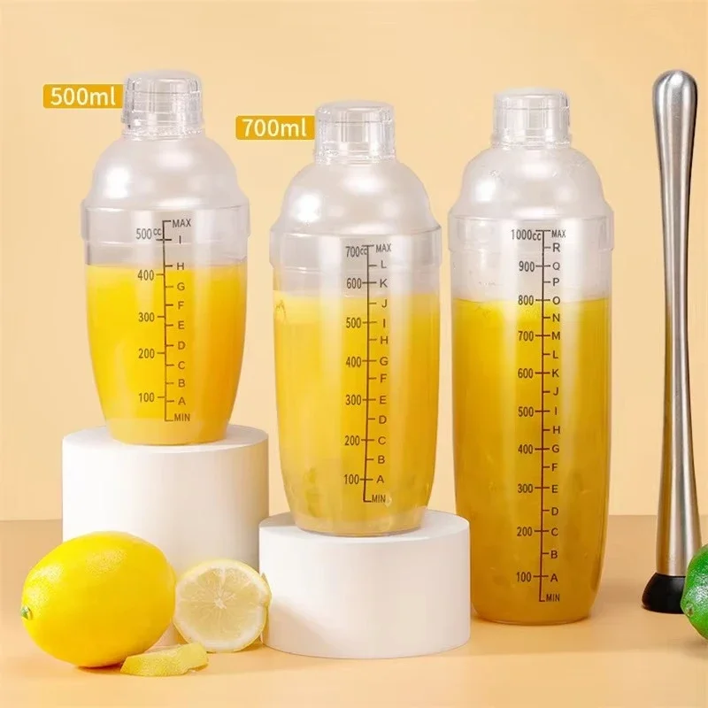 1PC 500ml/700ml Milk tea hand cranked shaker with graduations milk tea wine beverage shaker PC shaker Hand made lemon tea tool