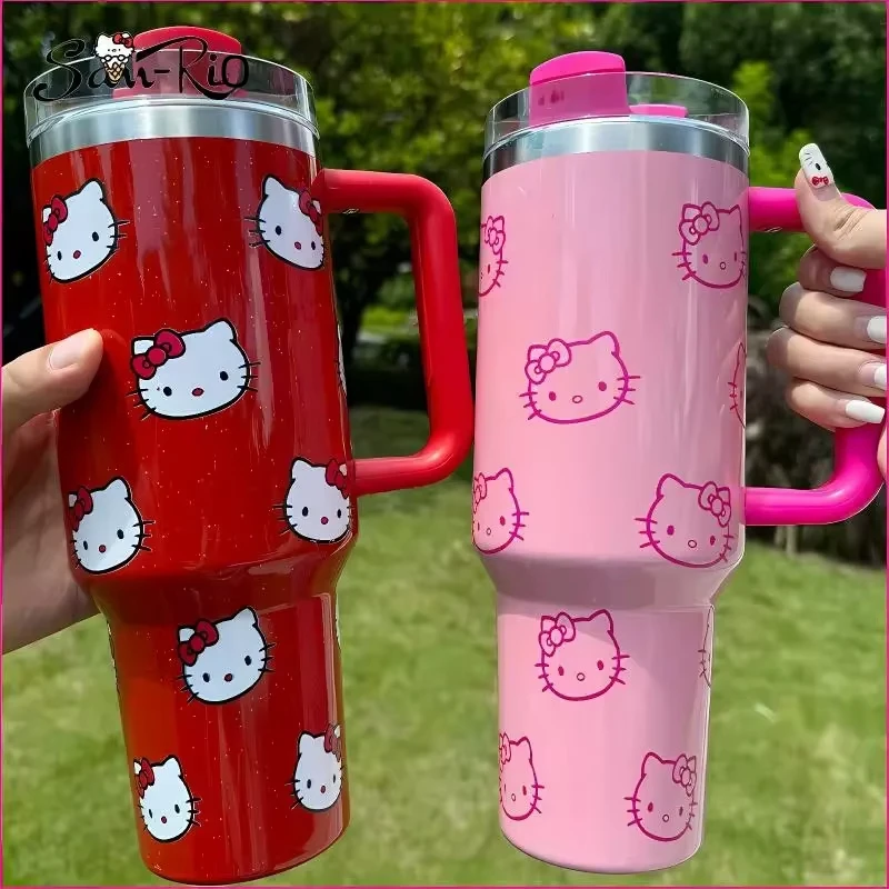 Hello Kitty 40Oz Stainless Steel Insulated Mug Pink with Handle Straw Mugs Large Capacity Thermos Drinks Coke Coffee Mug