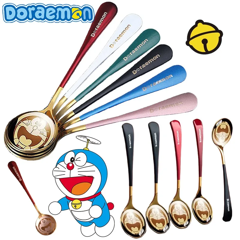 Cartoon Doraemon Stainless Steel Spoons Kawaii Soup Ladle Office Coffee Scoop for Man Women Cute Tableware Thickened Spoons  Read more