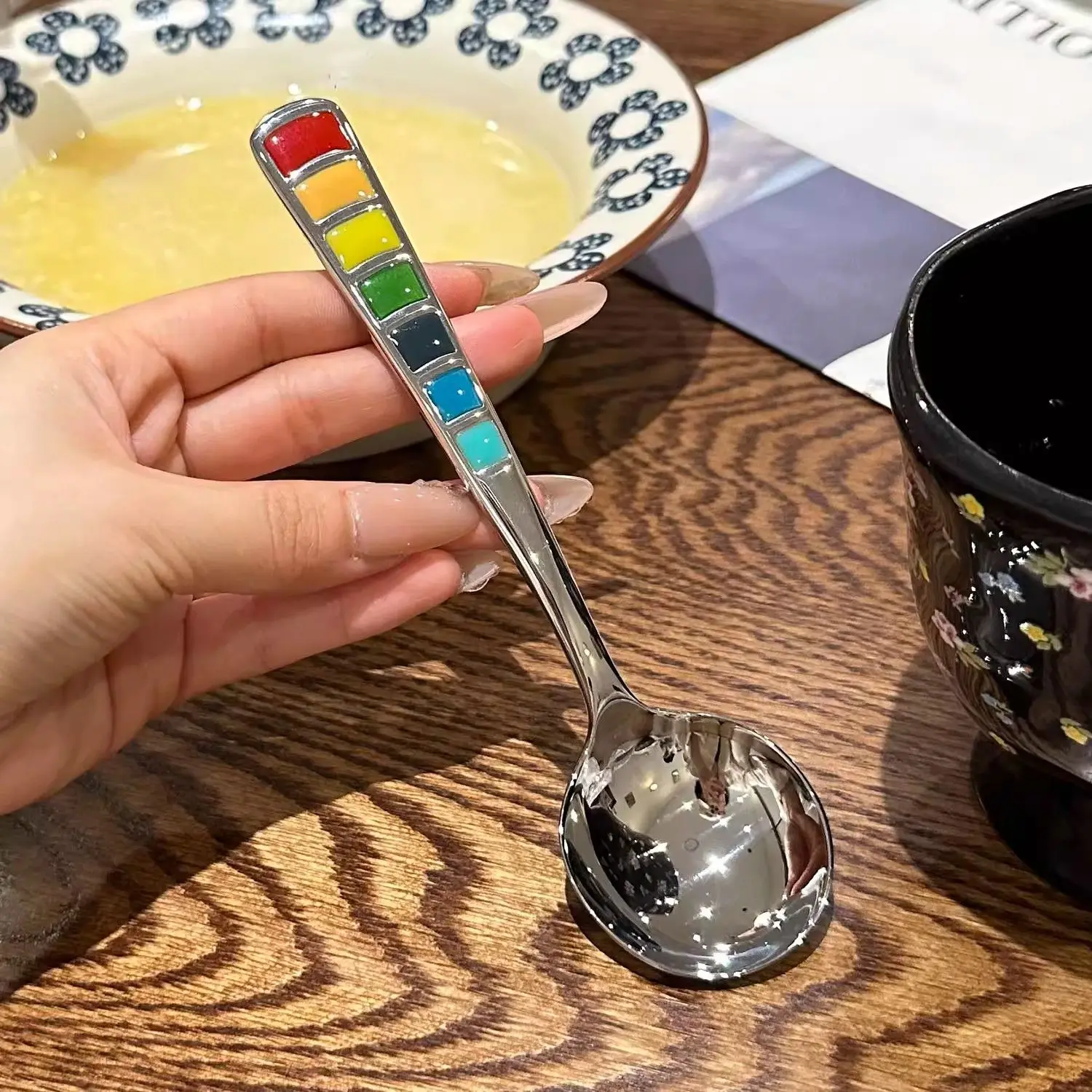 High-Aesthetic Colorful Enamel Spoons, Macaron-Colored Stainless Steel Dessert Spoons, for Home, Kids, Picnics & Bento