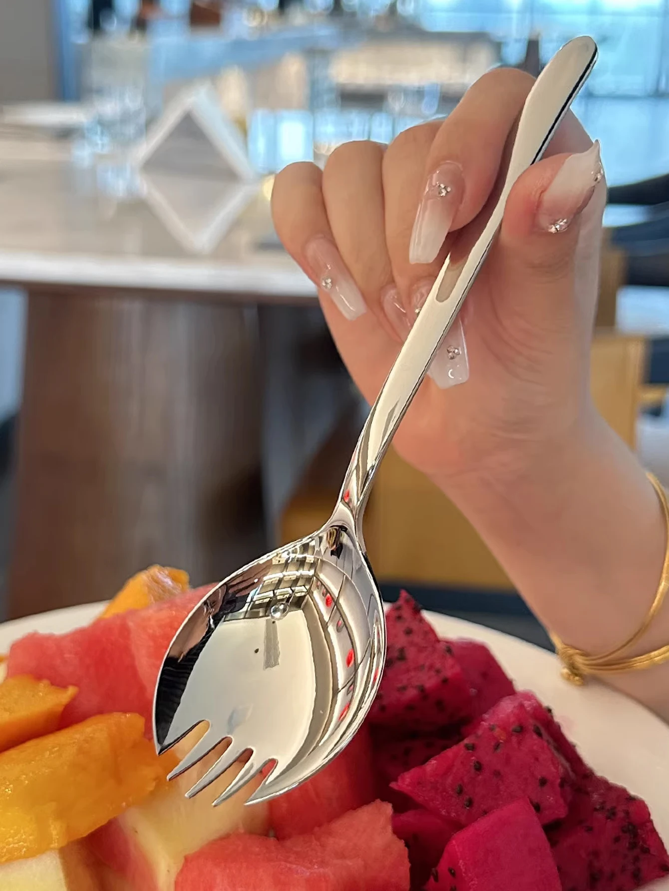 1pcs/2pcs Stainless Steel Salad Forks, 304 Stainless Steel Spork, Fork Reusable Fruit Appetizer Dessert Forks for Household Use