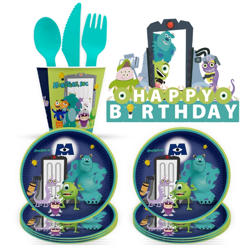 Disney Cute Cartoon Monsters University Theme Paper Tray Paper Cup Knife Fork Disposable Tableware Happy Birthday Party Suppile