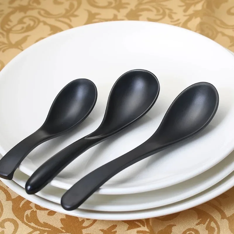 Diamine Long Handle Soup Spoon Black Imitation Porcelain Cutlery Short Handle Food Grade Plastic Spoon Korean Food Spoon
