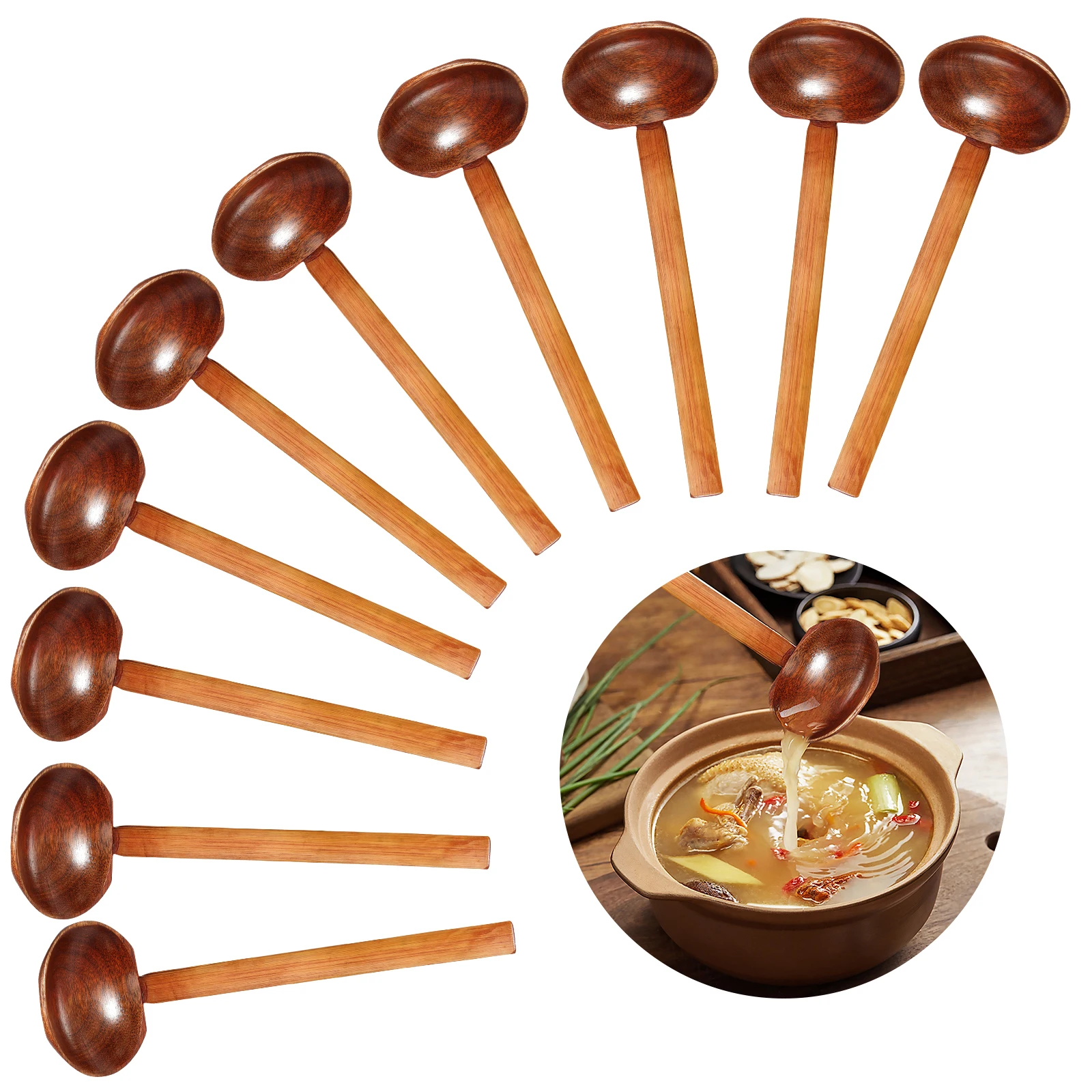 10Pcs Wood Soup Spoon with Long Handle Japanese Style Ramen Spoon Large Hot Pot Spoon Serving Spoon Kitchen Cooking Utensil