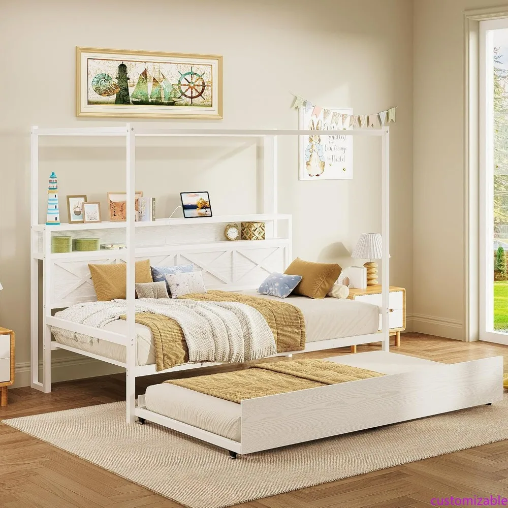 daybed with trundle, twin canopy bed frame with charging station, farmhouse daybed with strong supports for living room, bedroo
