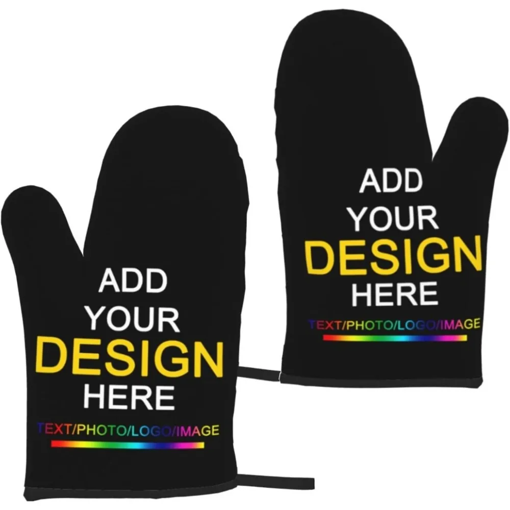 Personalized Heat Resistant Oven Mitts Custom Picture Logo Text Customized Non-Slip Oven Mitt Set for Kitchen Cooking Baking