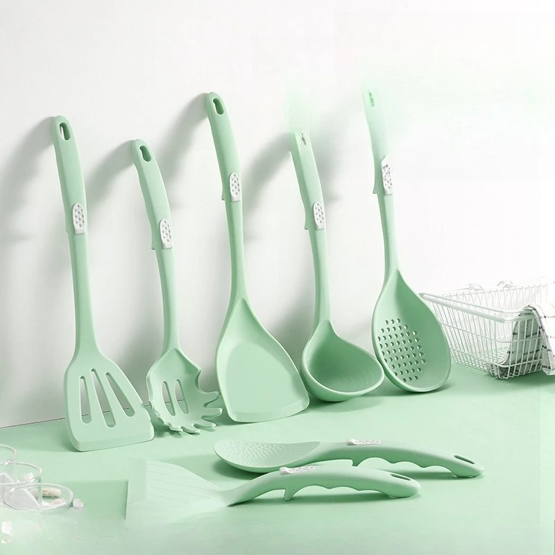 Heat Resistant Silicone Kitchen Utensils Set Easy to Clean Non-Stick Spoon And Cooking Spatula Set Green