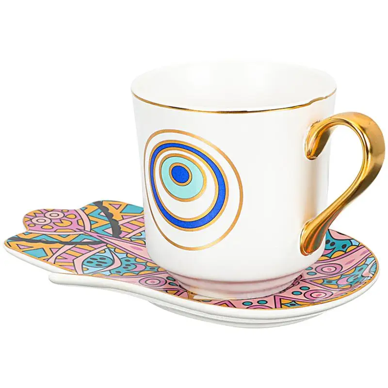 Turkish Coffee Cup and Saucer Set tea Devil's Eye Hamsa Hand Dish European Retro Creative Ceramic Cup Gift