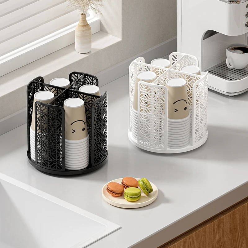 Rotating Paper Cup Dispenser, Cup Holder with 4 Compartments, Disposable Coffee Cup Dispenser Removable, Plastic Cup Storage